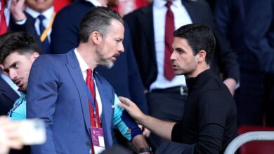 Mikel Arteta speaks with Arsenal chairman Josh Kroenke. (Image:…