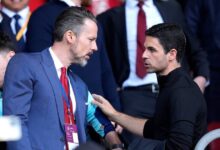 Mikel Arteta speaks with Arsenal chairman Josh Kroenke. (Image:…