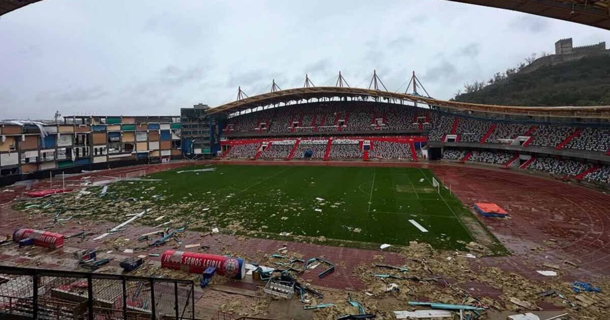 Estádio Dr. Magalhães Pessoa is home to LigaPro side Uniao de Leiria, boasting a capacity of 23,888. UD Leiria’s official club account took to Instagram after the first storm to show the vast wreckage, posting heartbreaking before and after pictures which captured the pitch and athletics track covered in rubble. The main building’s roof had collapsed too, while nearby trees had also fallen.