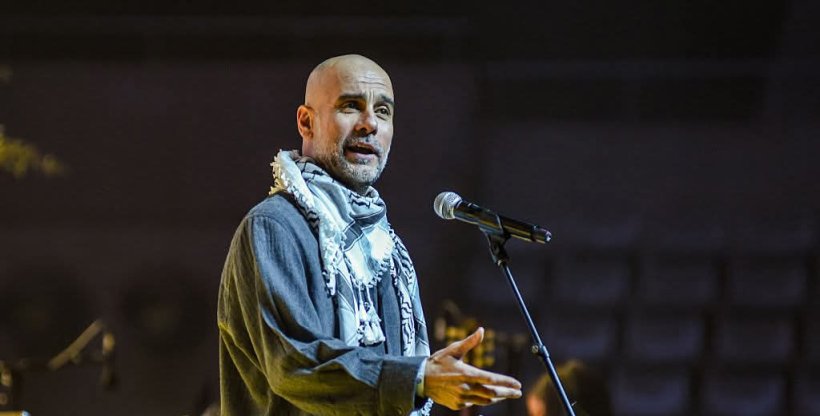 The Spanish coach Pep Guardiola participated in a charity event held in Spain to support Palestine, where he delivered a moving speech on behalf of the children of Gaza, in a humanitarian gesture that received wide interaction from the attendees and followers.